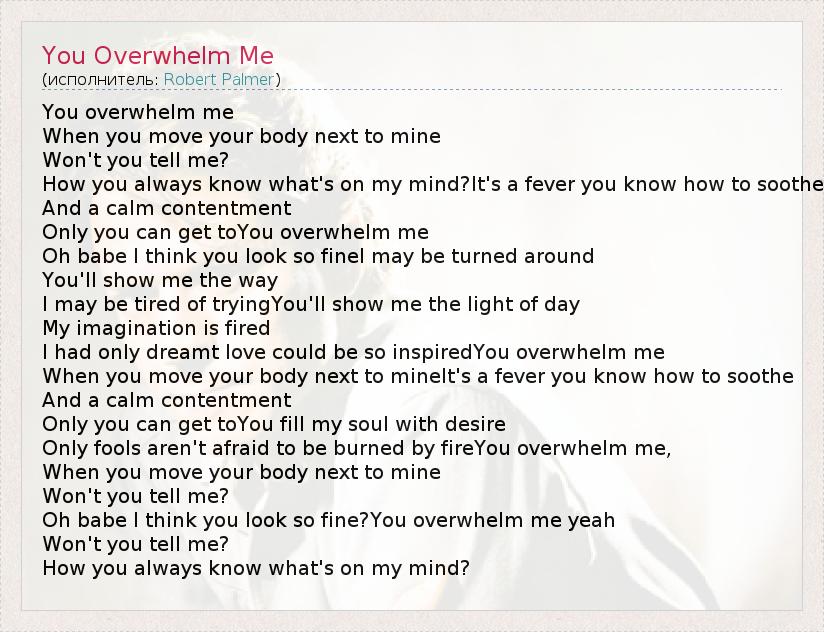 А как ты думаешь, о чем песня "You Overwhelm Me" ?