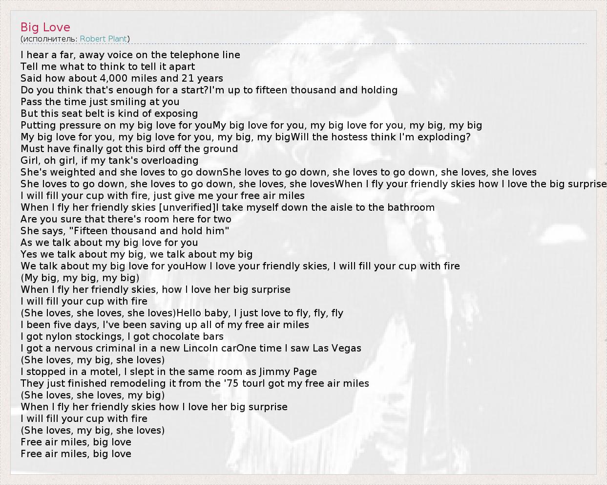 А как ты думаешь, о чем песня "Big Love" ?