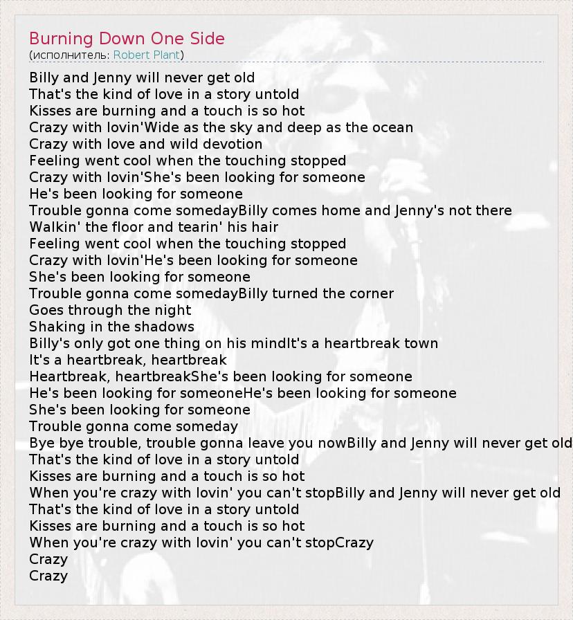 А как ты думаешь, о чем песня "Burning Down One Side" ?