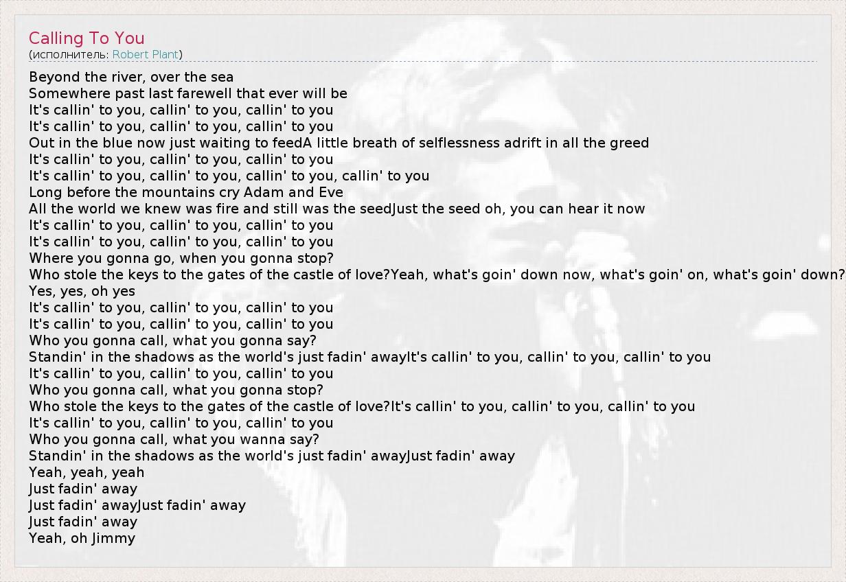 Who stole the keys to the gates of the castle of love?It's callin' to you, callin' to you, callin' to you