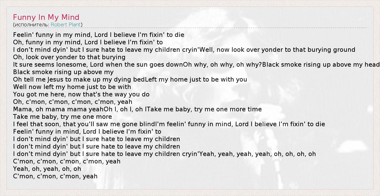 Oh, funny in my mind, Lord I believe I'm fixin' to