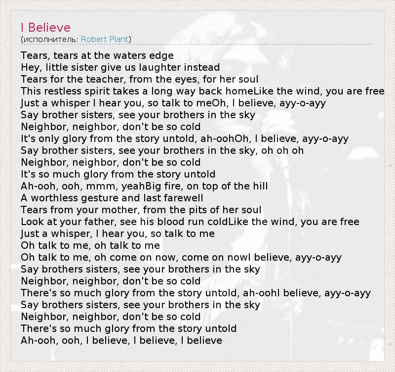 А как ты думаешь, о чем песня "I Believe" ?