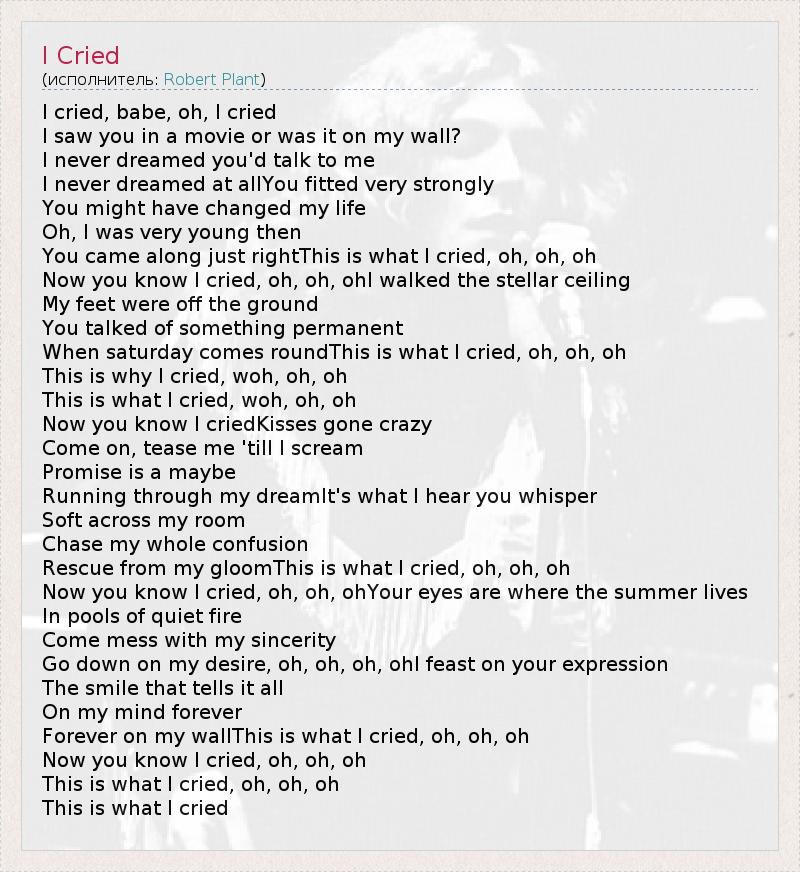 Now you know I cried, oh, oh, ohI walked the stellar ceiling