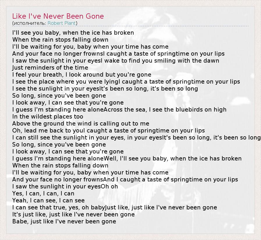 А как ты думаешь, о чем песня "Like I've Never Been Gone" ?