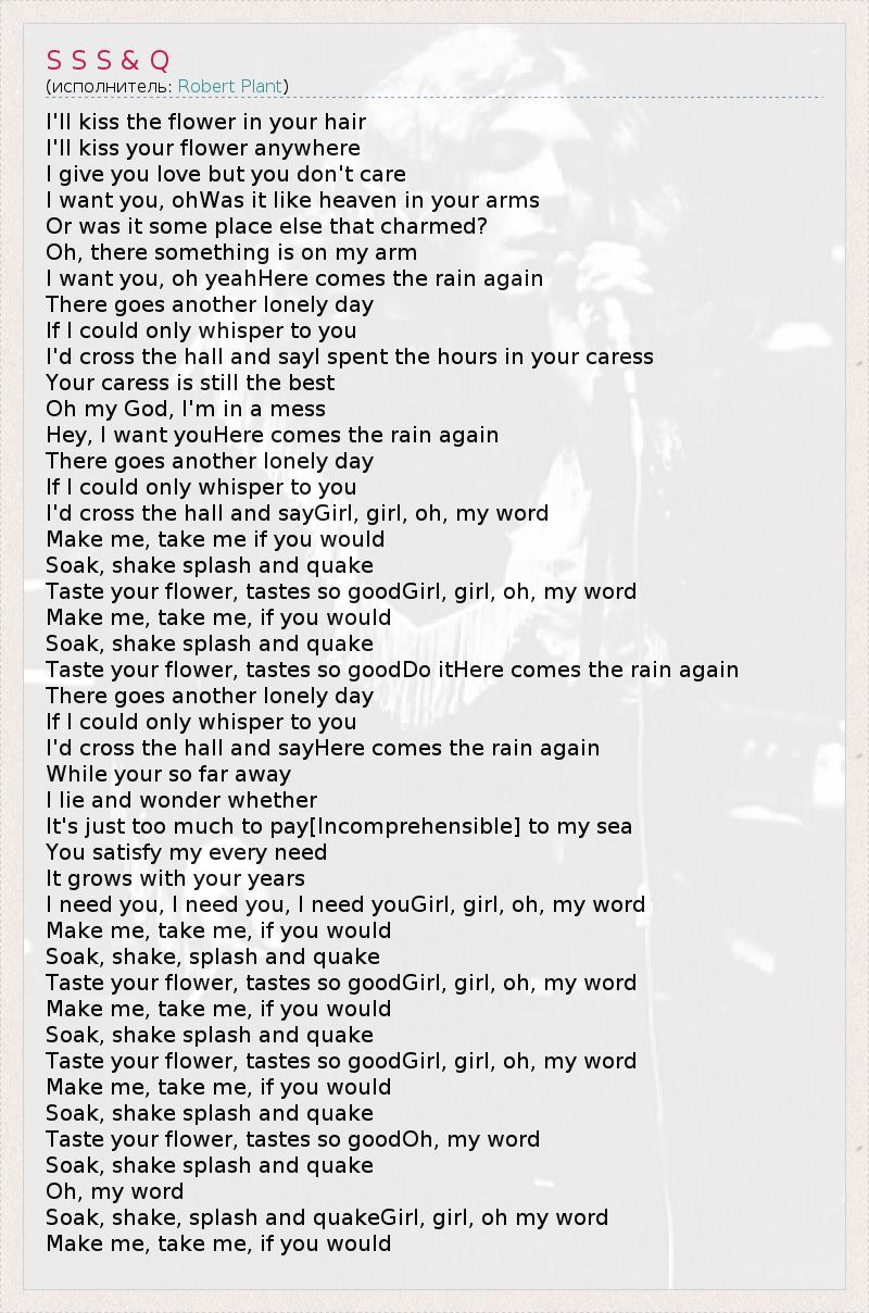А как ты думаешь, о чем песня "S S S & Q" ?