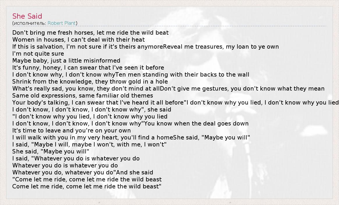 Это интересно:Роберт Энтони Плант (англ. Robert Anthony Plant, 20 августа 1948, Уэст-Бромидж, Стаффордшир, Англия) — британский рок-вокалист, известный прежде всего участием в Led Zeppelin. После распада группы Плант начал успешную сольную карьеру, которая продолжается по сей день. Роберт Плант — кавалер Ордена Британской империи (CBE).Великолепная четвёрка проработала вместе 12 лет, но смерть барабанщика послужила... продолжение