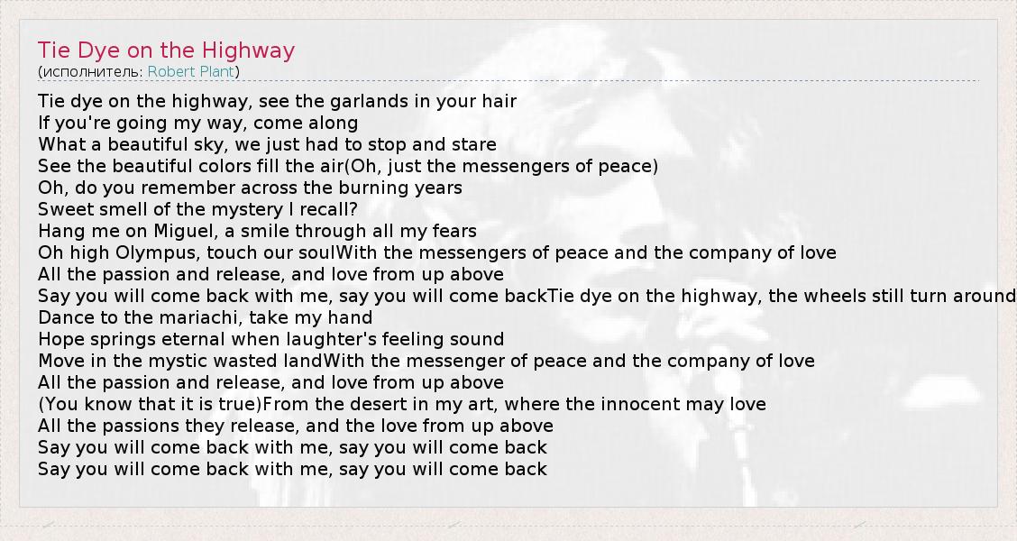 А как ты думаешь, о чем песня "Tie Dye on the Highway" ?