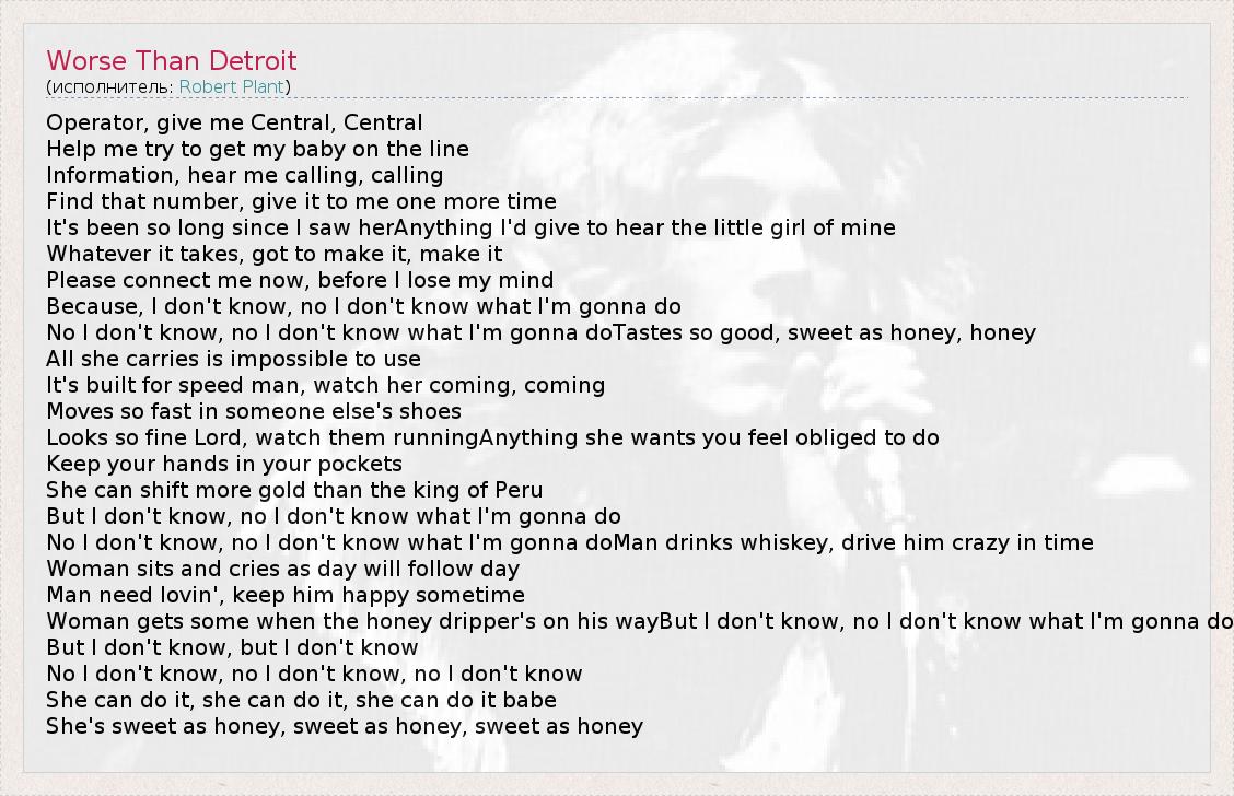 А как ты думаешь, о чем песня "Worse Than Detroit" ?