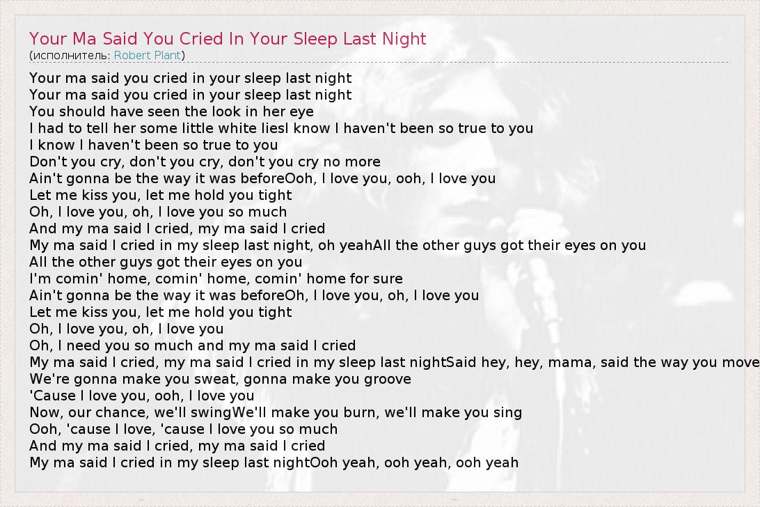ГлавнаяИсполнителиRobert PlantYour Ma Said You Cried In Your Sleep Last Night