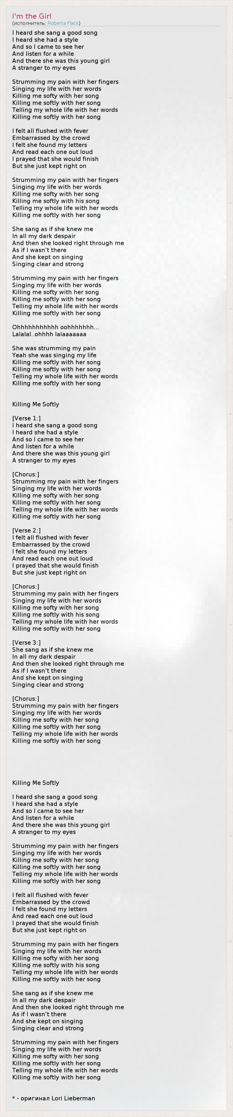 Это интересно:Роберта Флэк (англ. Roberta Flack, род. 10 февраля 1937 г.) — американская певица, автор песен. Неоднократная обладательница премии Грэмми. Известна исполнением утончённых джазовых баллад «The First Time Ever I Saw Your Face» (1972), «Killing Me Softly With His Song» (1973) и «Feel Like Makin' Love» (1974). Успех пришёл к Флэк в 1972 году, когда Клинт Иствуд использовал ее песню «The First Time Ever I Saw Your Face» в своем первом фильме «Сыграй мне «Туманно»».... продолжение