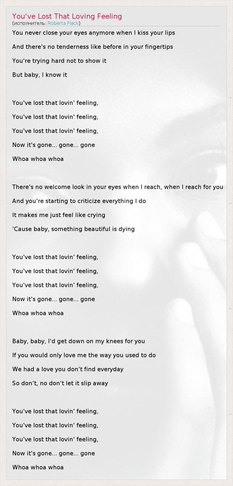 ГлавнаяИсполнителиRoberta FlackYou've Lost That Loving Feeling