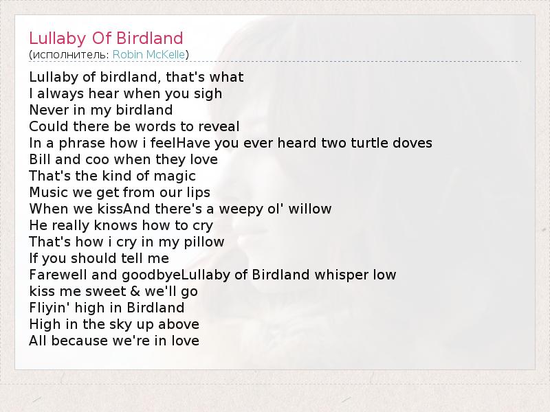А как ты думаешь, о чем песня "Lullaby Of Birdland" ?