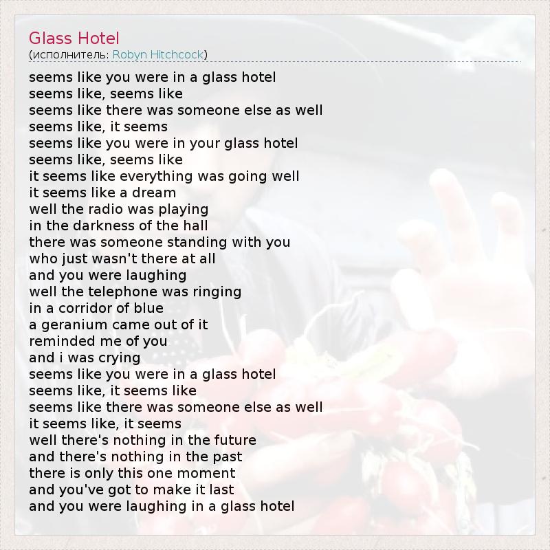 А как ты думаешь, о чем песня "Glass Hotel" ?