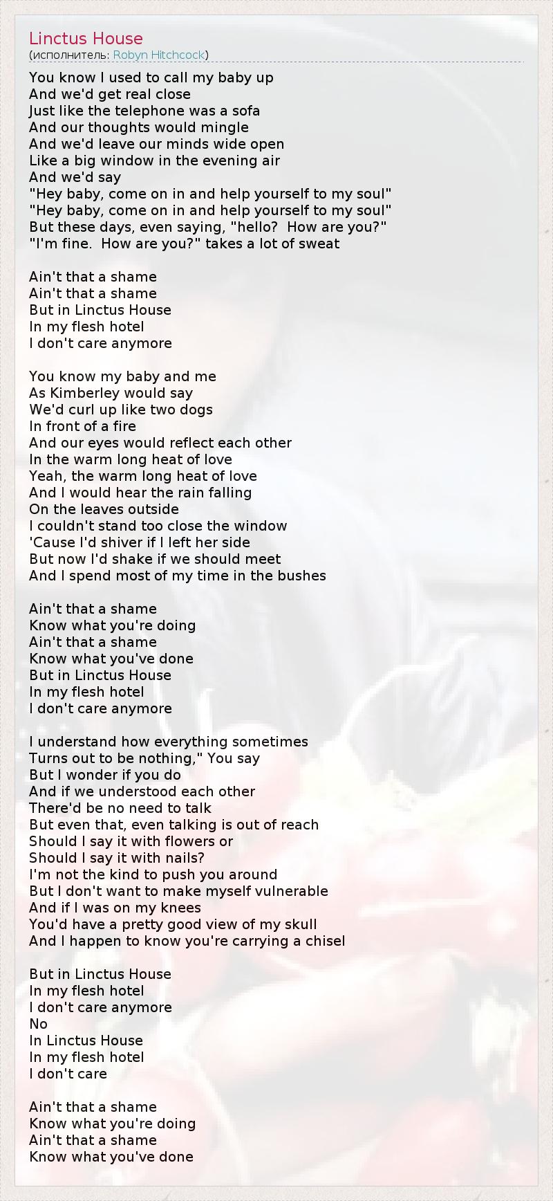 А как ты думаешь, о чем песня "Linctus House" ?