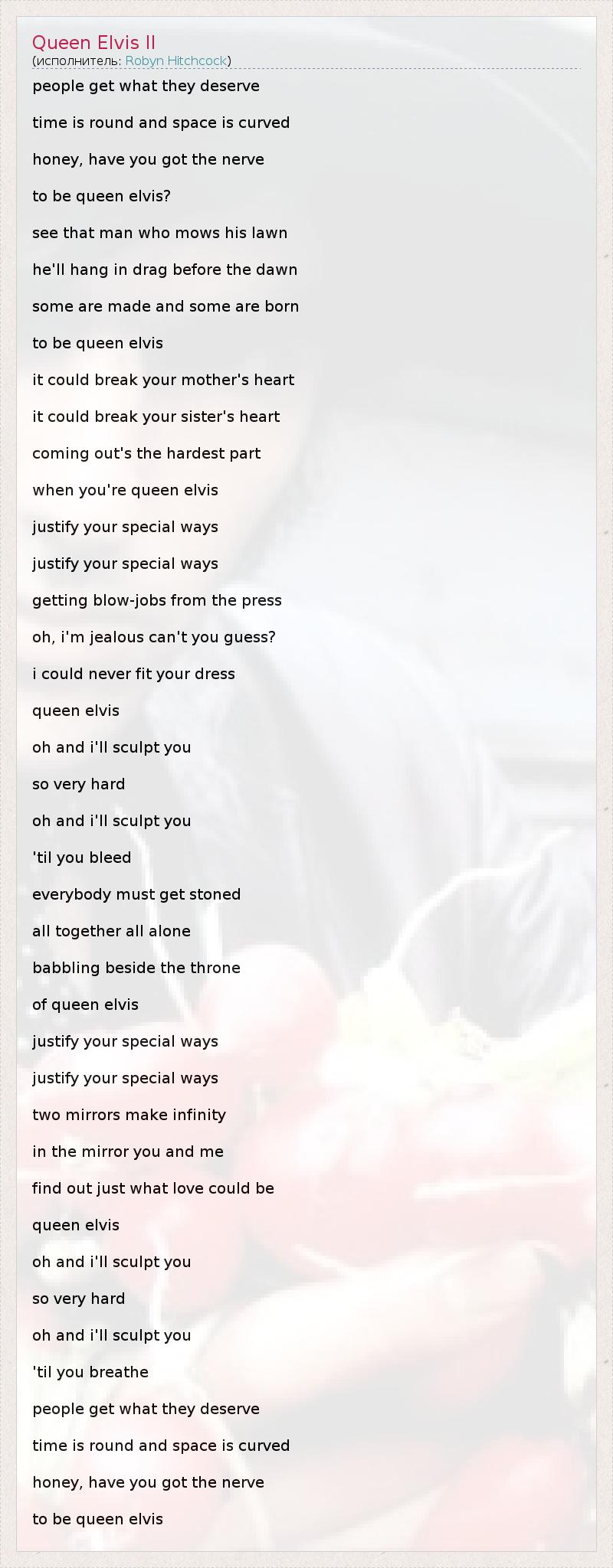А как ты думаешь, о чем песня "Queen Elvis II" ?