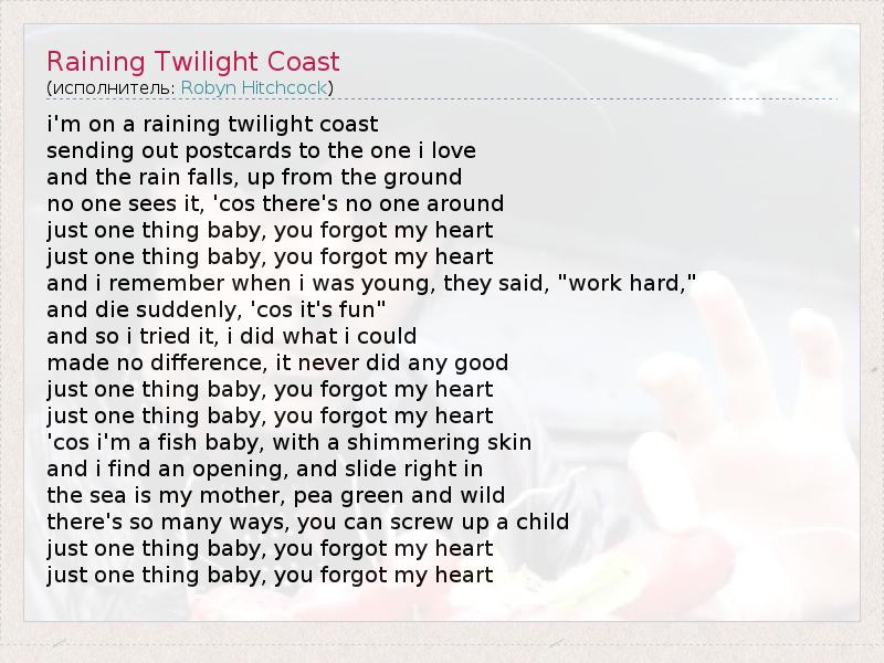 А как ты думаешь, о чем песня "Raining Twilight Coast" ?