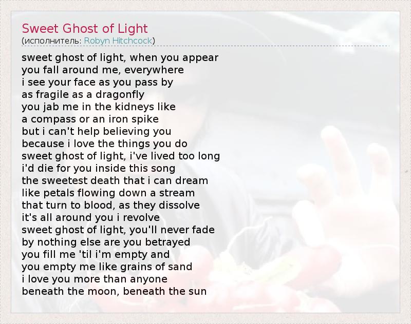 А как ты думаешь, о чем песня "Sweet Ghost of Light" ?