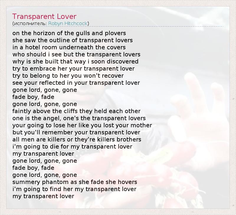 А как ты думаешь, о чем песня "Transparent Lover" ?