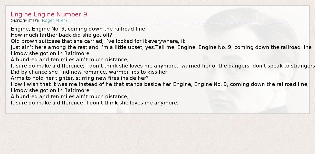 А как ты думаешь, о чем песня "Engine Engine Number 9" ?