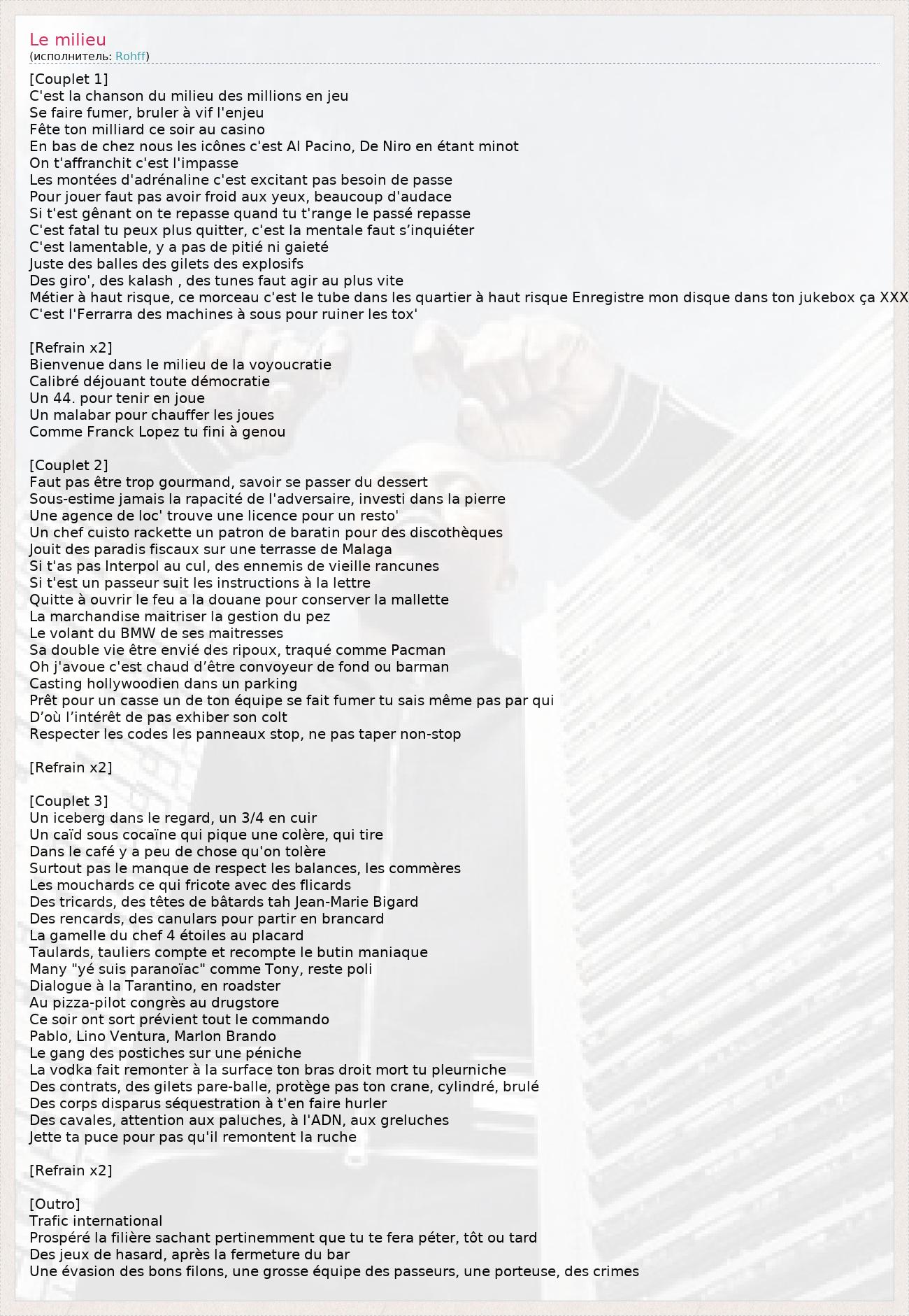 А как ты думаешь, о чем песня "Le milieu" ?