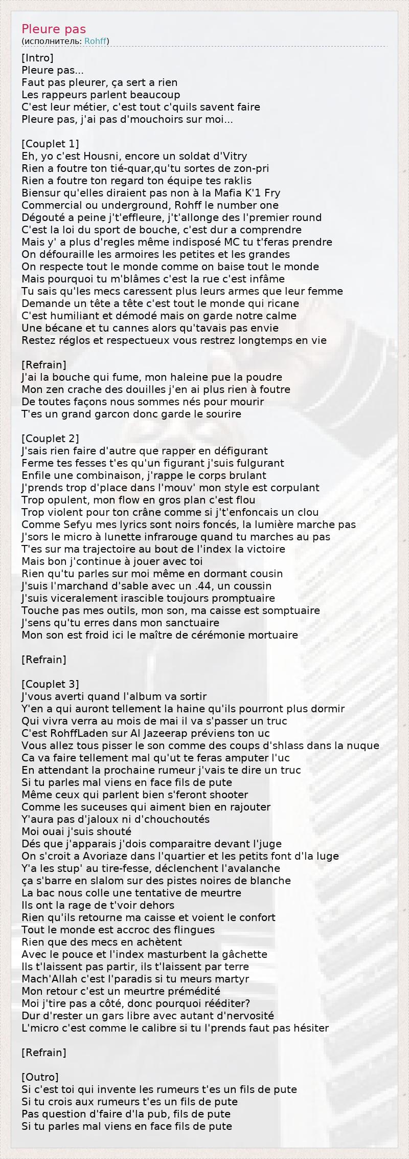А как ты думаешь, о чем песня "Pleure pas" ?