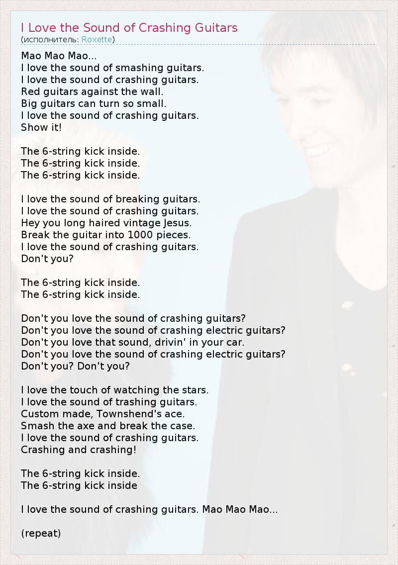 ГлавнаяИсполнителиRoxetteI Love the Sound of Crashing Guitars