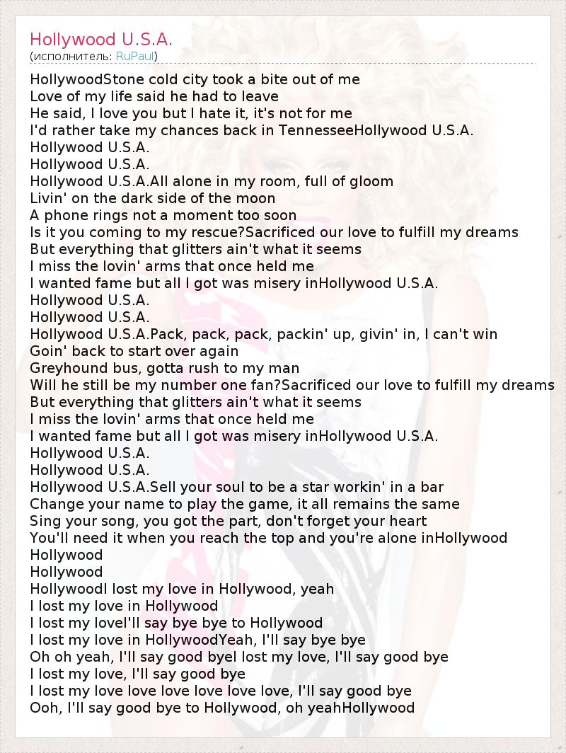 А как ты думаешь, о чем песня "Hollywood U.S.A." ?