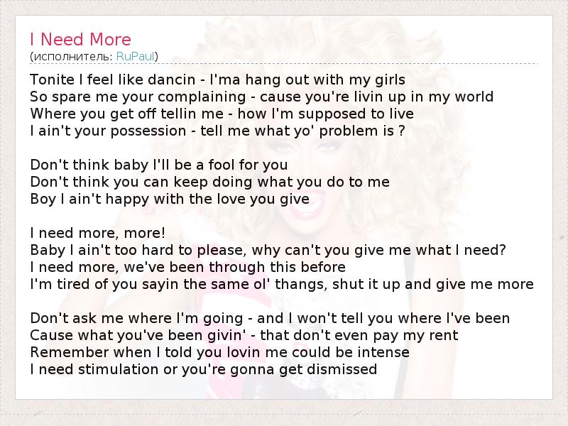 А как ты думаешь, о чем песня "I Need More" ?