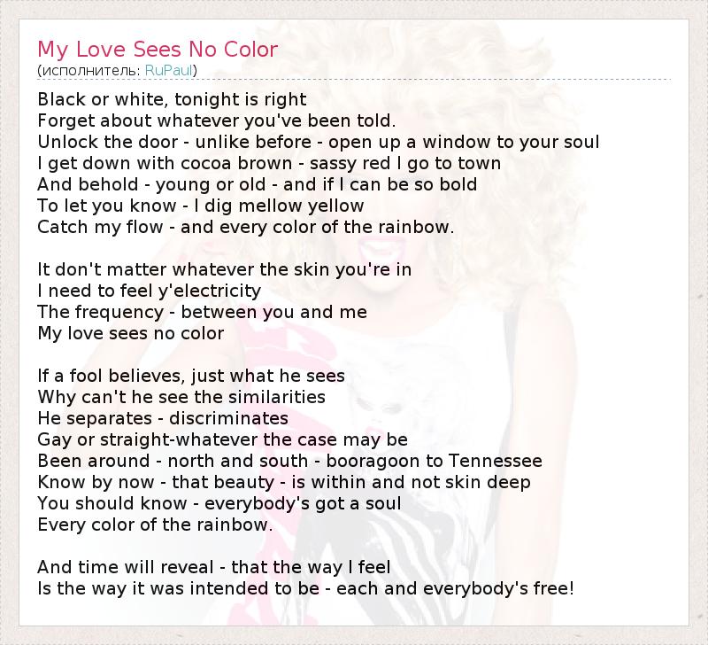 А как ты думаешь, о чем песня "My Love Sees No Color" ?
