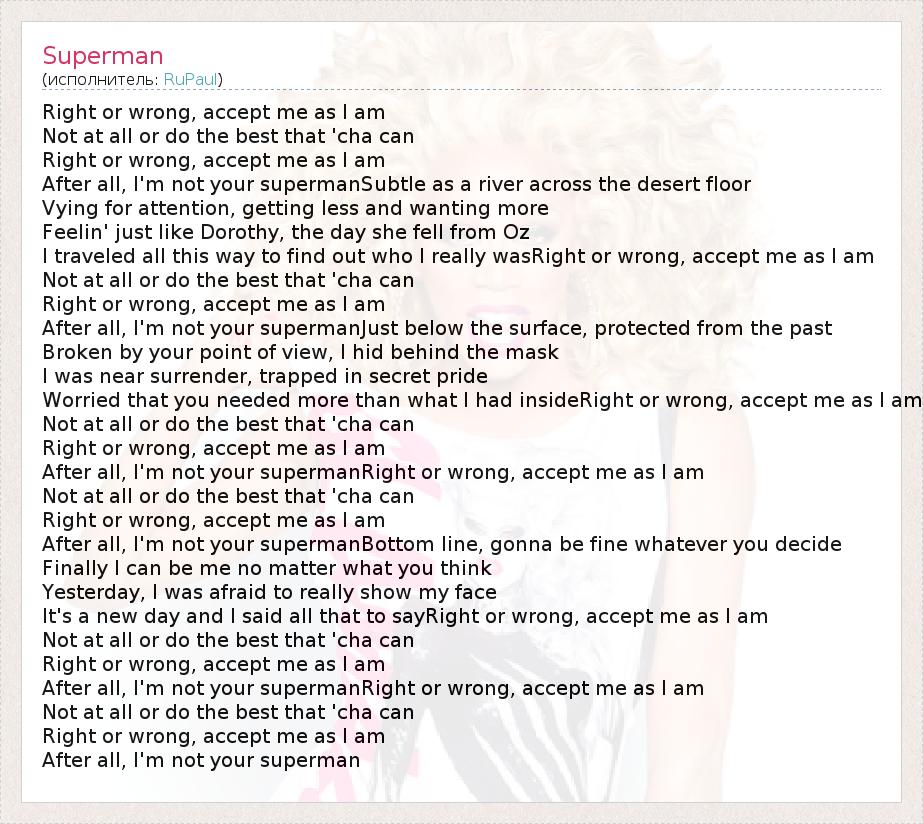 After all, I'm not your supermanRight or wrong, accept me as I am
