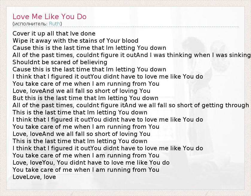 А как ты думаешь, о чем песня "Love Me Like You Do" ?