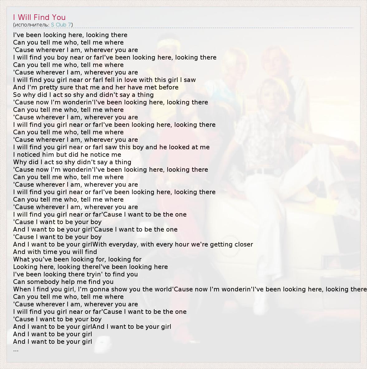 А как ты думаешь, о чем песня "I Will Find You" ?