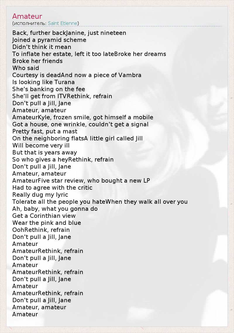 А как ты думаешь, о чем песня "Amateur" ?