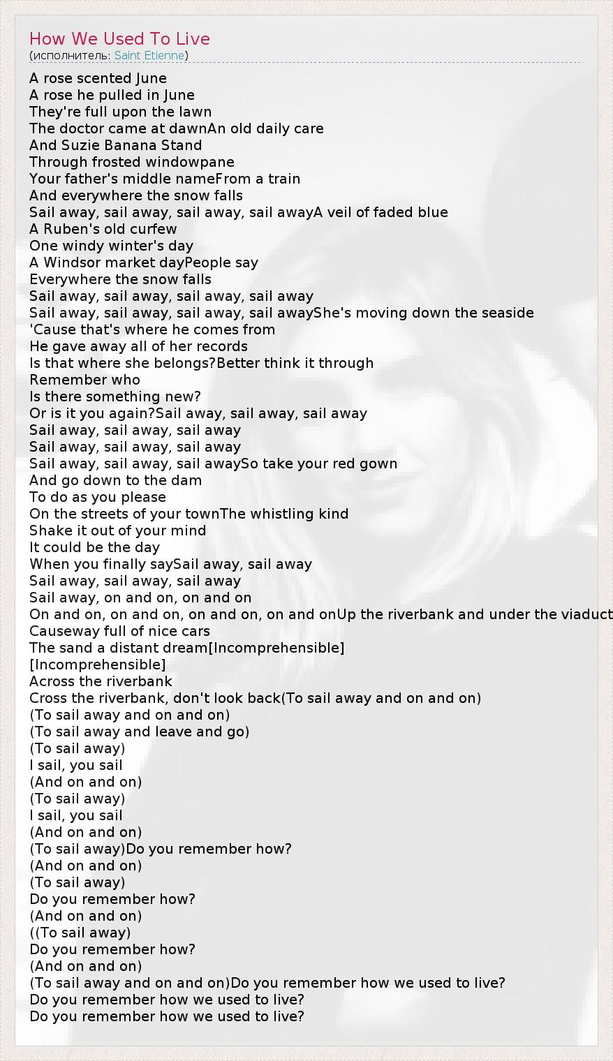 (To sail away and on and on)Do you remember how we used to live?
