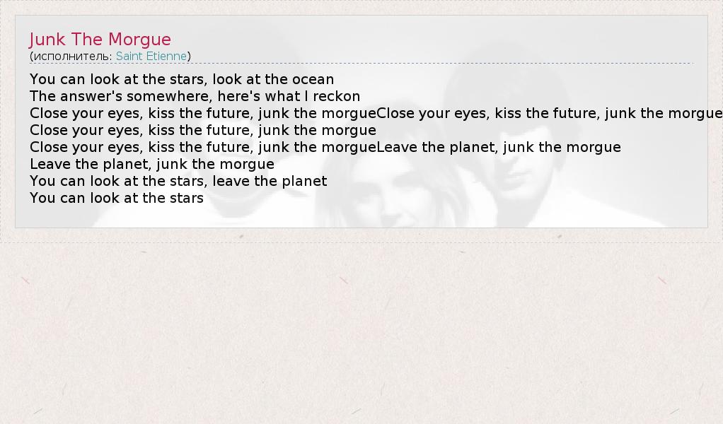 А как ты думаешь, о чем песня "Junk The Morgue" ?