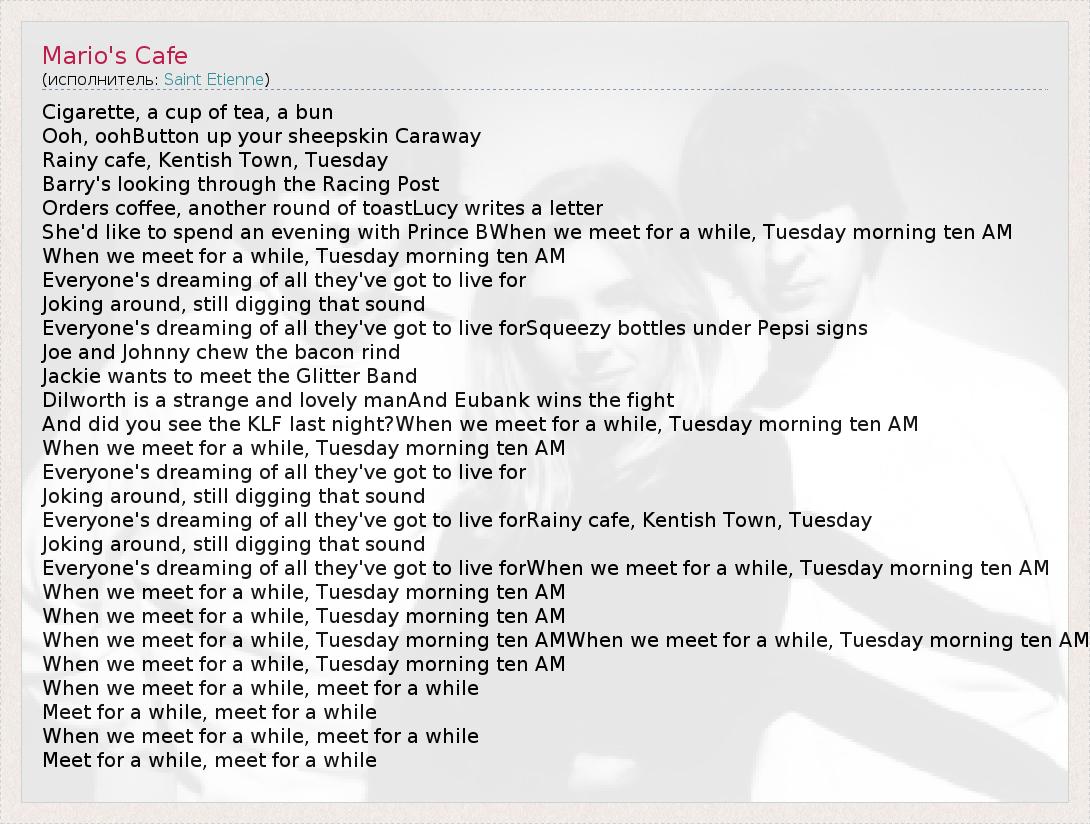 А как ты думаешь, о чем песня "Mario's Cafe" ?