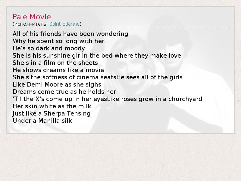 А как ты думаешь, о чем песня "Pale Movie" ?