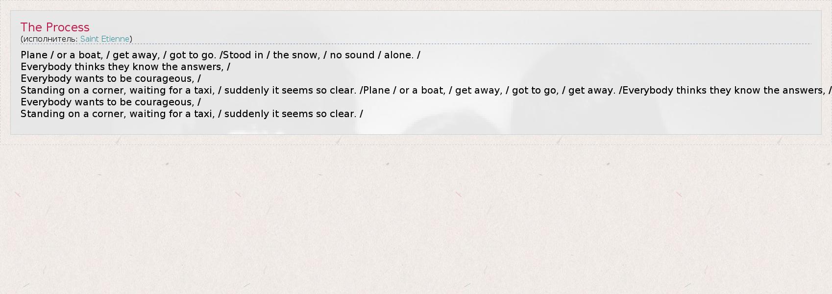 Standing on a corner, waiting for a taxi, / suddenly it seems so clear. /Plane / or a boat, / get away, / got to go, / get away. /Everybody thinks they know the answers, /