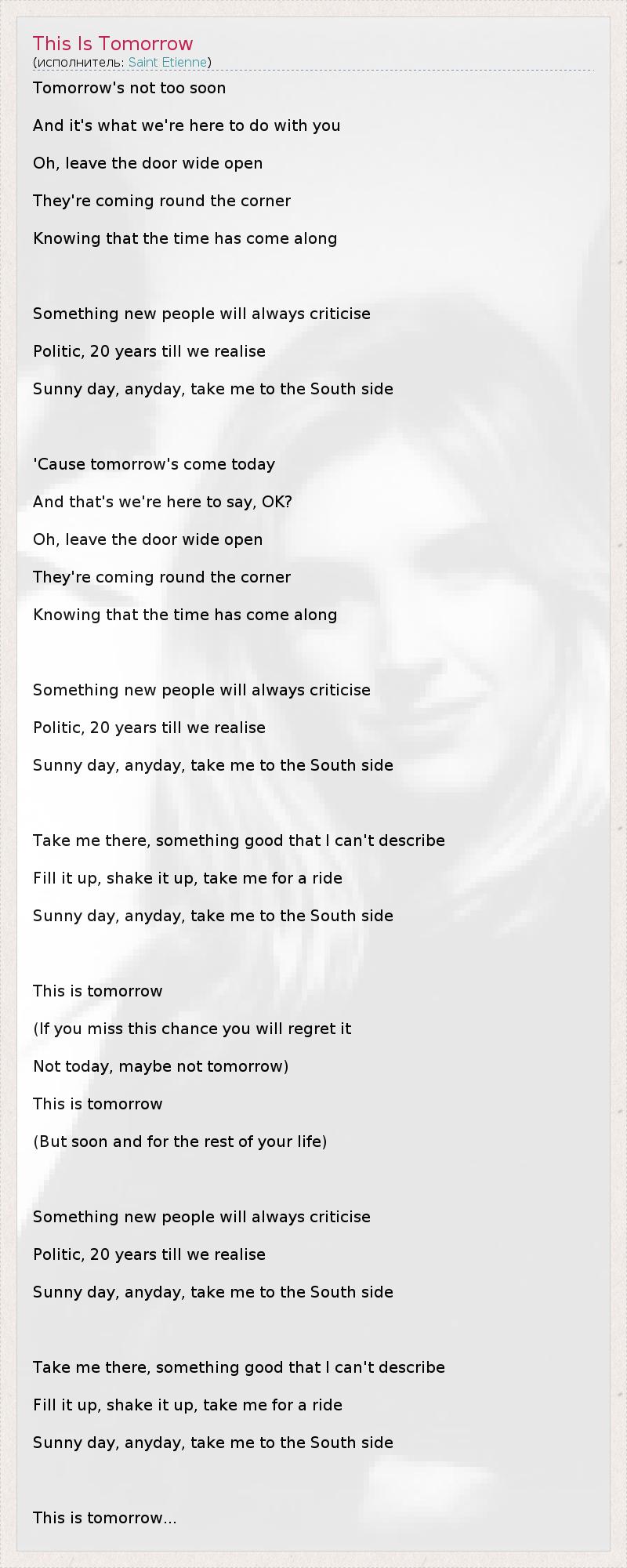 А как ты думаешь, о чем песня "This Is Tomorrow" ?