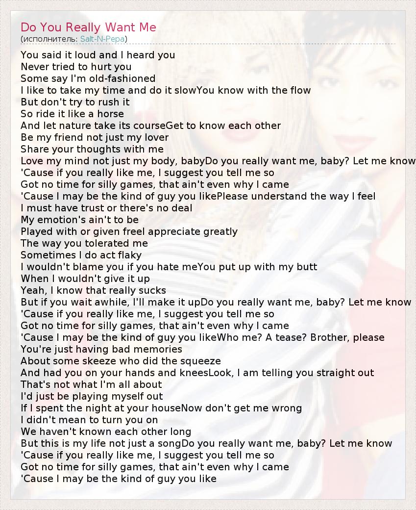 А как ты думаешь, о чем песня "Do You Really Want Me" ?
