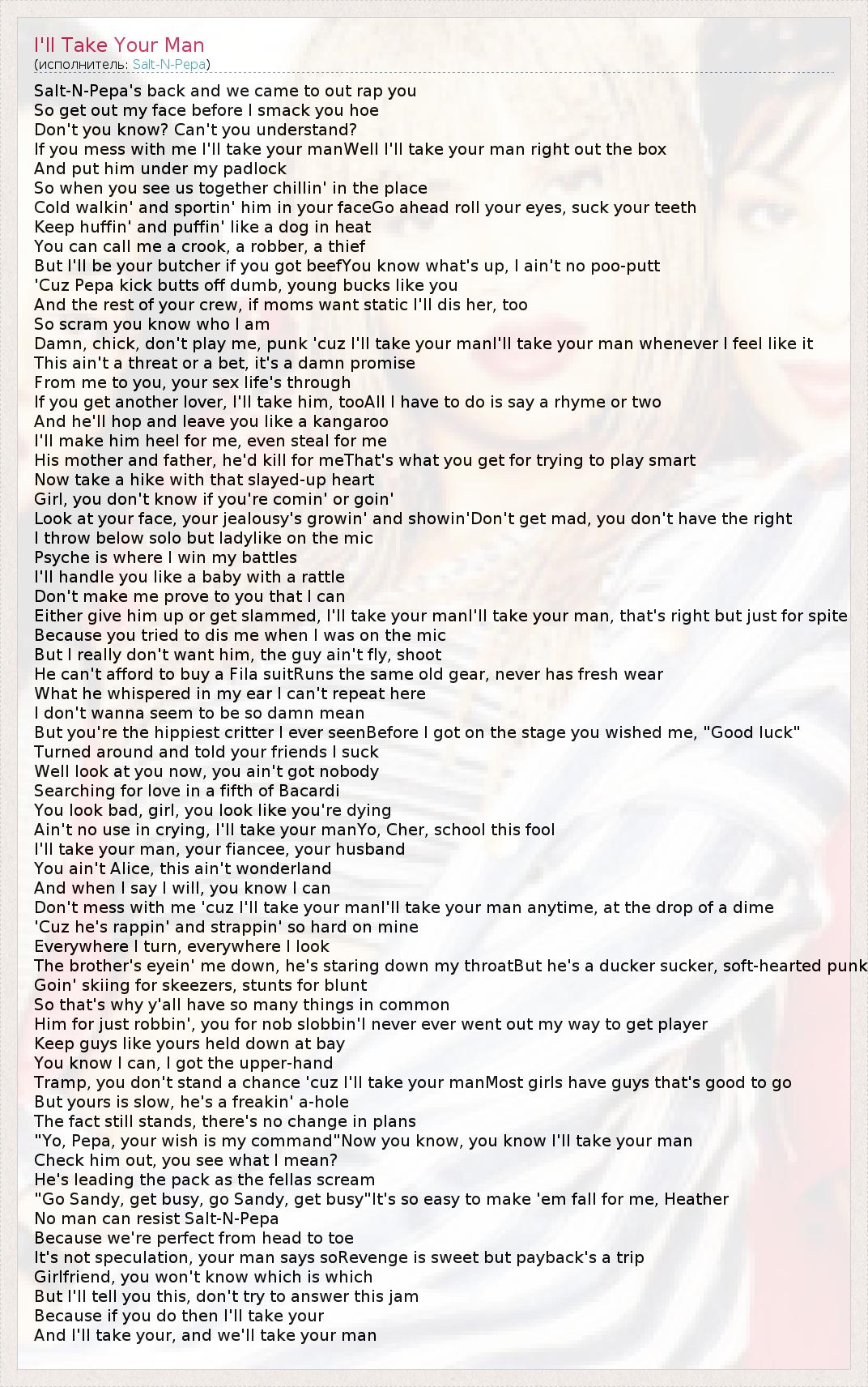 А как ты думаешь, о чем песня "I'll Take Your Man" ?