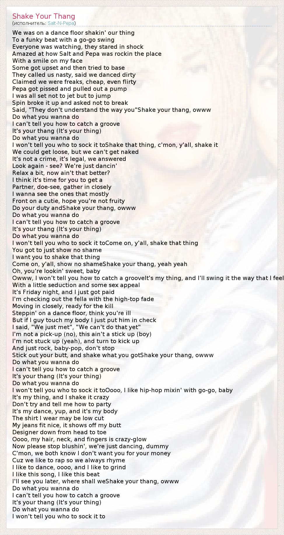 А как ты думаешь, о чем песня "Shake Your Thang" ?