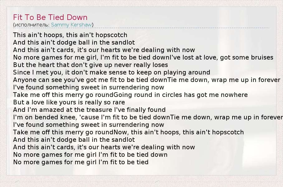 А как ты думаешь, о чем песня "Fit To Be Tied Down" ?