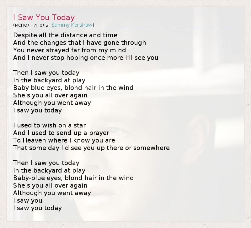 А как ты думаешь, о чем песня "I Saw You Today" ?