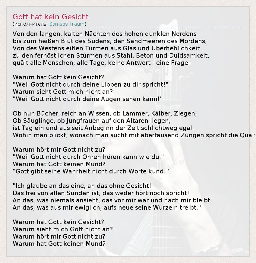 А как ты думаешь, о чем песня "Gott hat kein Gesicht" ?