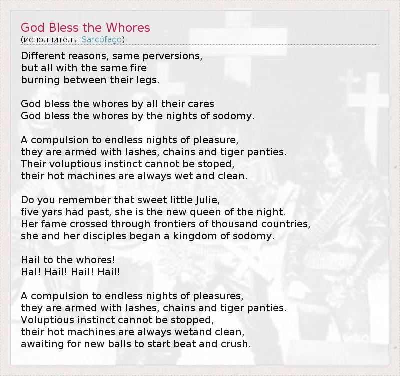 А как ты думаешь, о чем песня "God Bless the Whores" ?