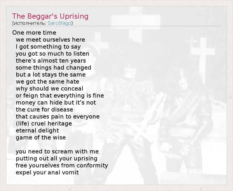 А как ты думаешь, о чем песня "The Beggar's Uprising" ?
