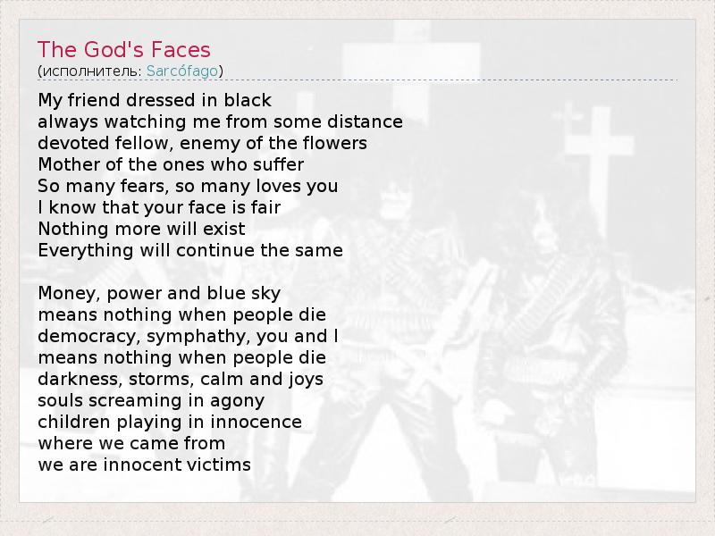 А как ты думаешь, о чем песня "The God's Faces" ?