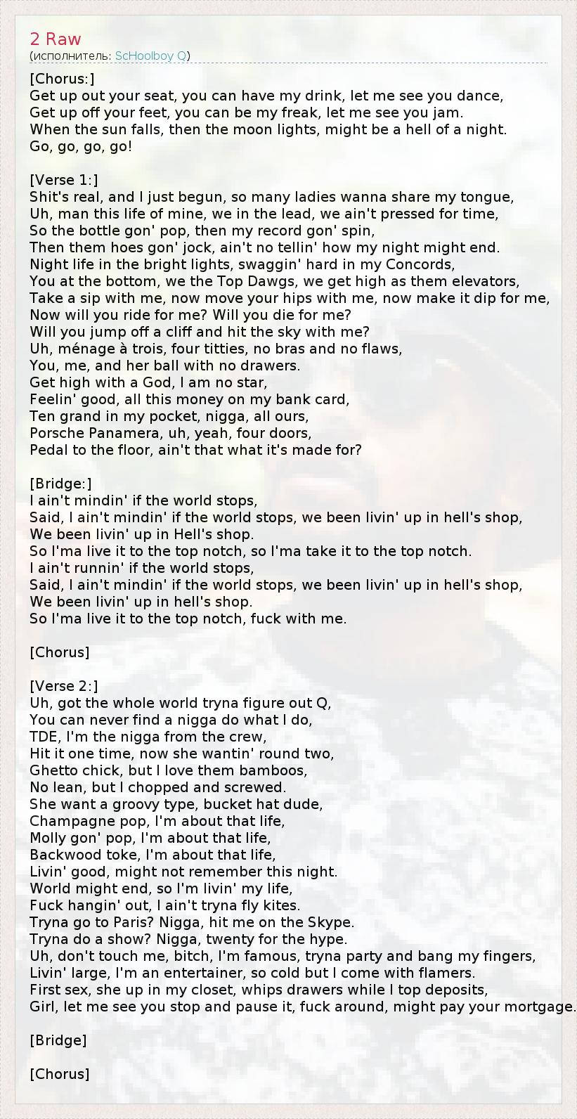 4 – Top Dawg Entertainment – независимый звукозаписывающий лейбл, с которым Schoolboy Q заключил контракт в 2009 году.