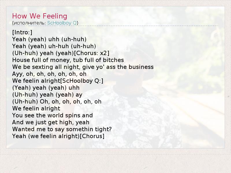 А как ты думаешь, о чем песня "How We Feeling" ?
